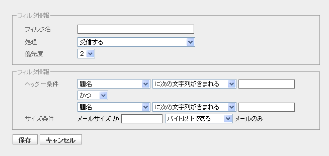 | ヘッダーのみ受信する | ルールに合致したメールのヘッダーのみ受信します。 ※メールの本文を見ることができません。ご注意ください。 |